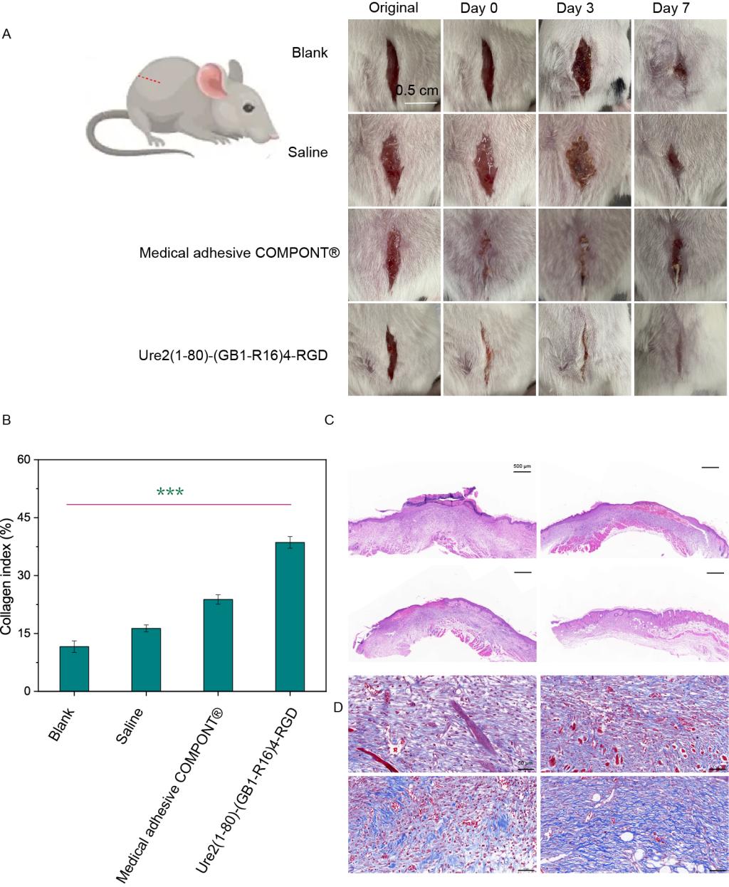 图5超分子弹性蛋白可替代手术缝合线促进线性伤口的修复和组织再生。