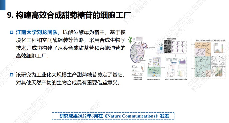江南大学生物工程学院和未来食品科学中心陈坚院士团队刘龙教授课题组的研究成果“De novo biosynthesis of rubusoside and rebaudiosides in engineered yeasts”(于2022年6月发表于《Nature Communications》,第一作者为2019级博士生徐雅梦,刘龙教授为通讯作者)成功入选。