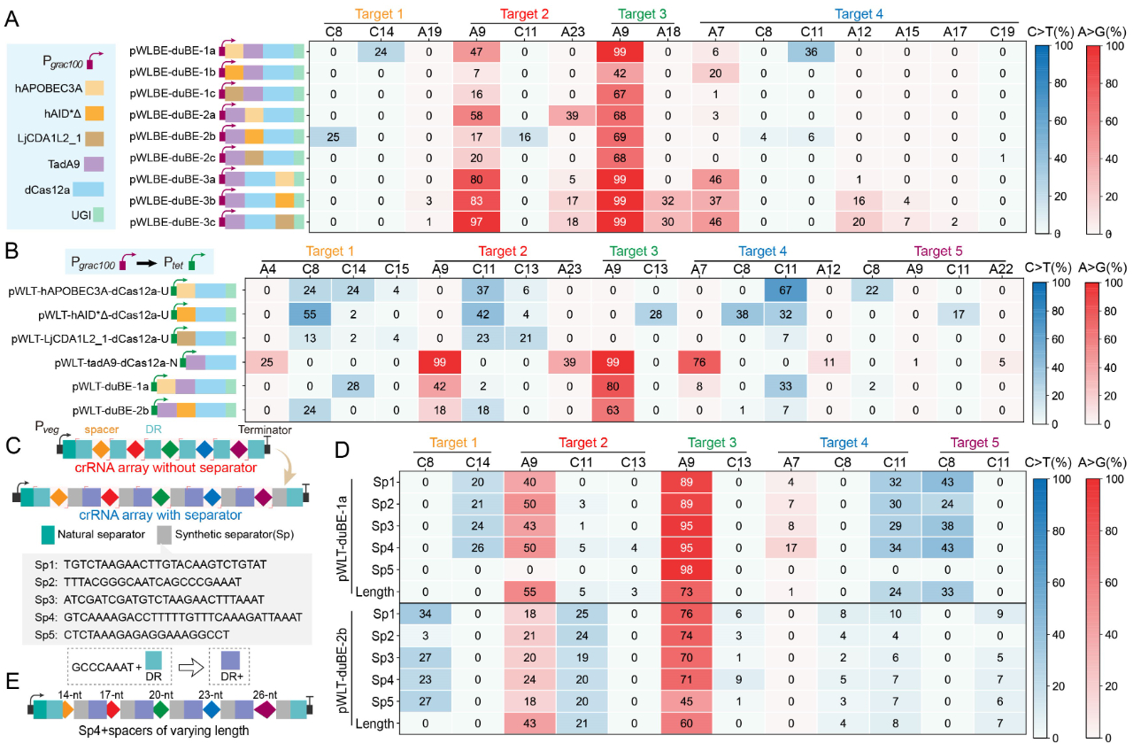 图1基于dCas12a的双功能多靶点碱基编辑器MultiduBE的设计、创制及应用