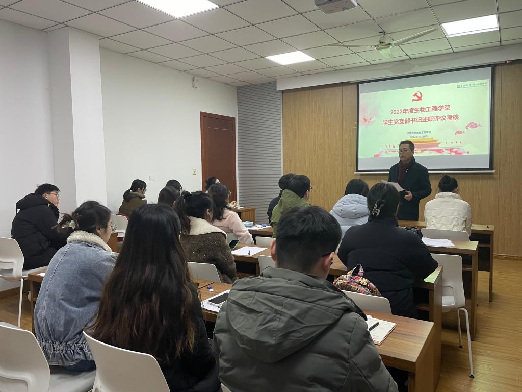 为深入贯彻落实习近平新时代中国特色社会主义思想和党的二十大精神,推动全面从严治党向纵深发展,11月28日下午和12月1日下午,生物工程学院党委分别于茅台厅、B417会议室召开2022年度教师和学生党支部书记抓党建工作述职评议考核会,学院党委副书记周云龙,各党支部书记和支部委员、部分师生党员代表参加会议。