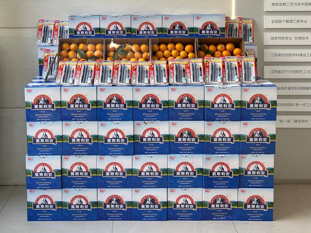 学院为同学们准备了酸奶、文具、橙子等礼物,预祝同学们“心想事橙”、金榜题名,120余名考研学子错峰来到生工楼大厅领取。生物工程学院党委副书记周云龙、本科毕业班辅导员张同舟来到现场给同学们发放慰问礼物,并与同学们亲切交谈。两位老师对大家前期的刻苦努力表示肯定,叮嘱同学们抓住最后的冲刺时机继续拼搏,考试时放松心态、沉着应对、胆大心细,鼓励大家发扬“善于实践,勇于创新”的发酵精神,做自信、豪迈的生工人,并祝愿大家蟾宫折桂,马到成功。同学们深受鼓舞,对学院和老师们的关怀表示感谢,纷纷表示将拼搏进取,继续努力,不负学院和老师的期望!