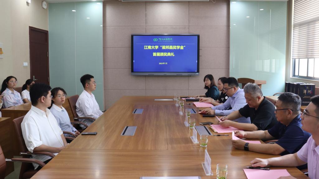 7月5日,江南大学首届“梁邦昌奖学金”颁奖典礼在生物工程学院举行。梁邦昌先生之子梁广友,江南大学原副校长、生物工程学院教授徐岩,生物工程学院党委书记程捷音,生物工程学院教授范文来等出席颁奖典礼,活动由学院党委副书记、副院长林丹主持。