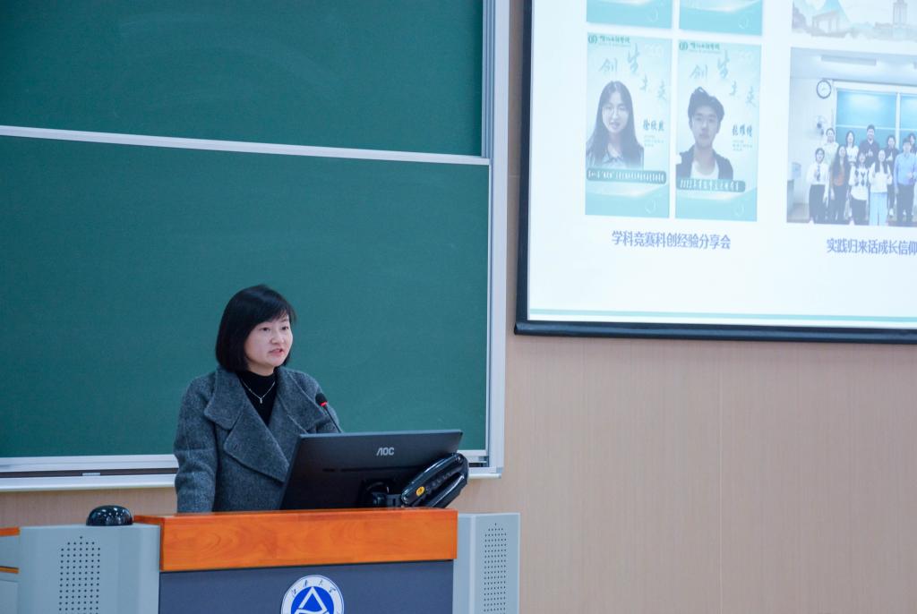 大会第二阶段进行2023年度学科竞赛总结,并启动了2024年度学科竞赛各项工作。分管学科竞赛的辅导员刘畅做学院2023年学科竞赛工作报告。她从“大创项目-学科竞赛”养成体系、“社会资源-保障制度”激励体系、“师资力量-社会力量”支持体系介绍了学院创新创业协同育人体系,总结了学生创新创业团队2023年在A类、B类学科竞赛上取得的各项突破性成果。同时启动2024年学科竞赛工作,重点聚焦全国大学生生命科学竞赛、挑战杯以及中国国际大学生创新大赛,从参赛要求、赛程安排、PPT制作、往届优秀作品分析等方面作了深入浅出地阐述。