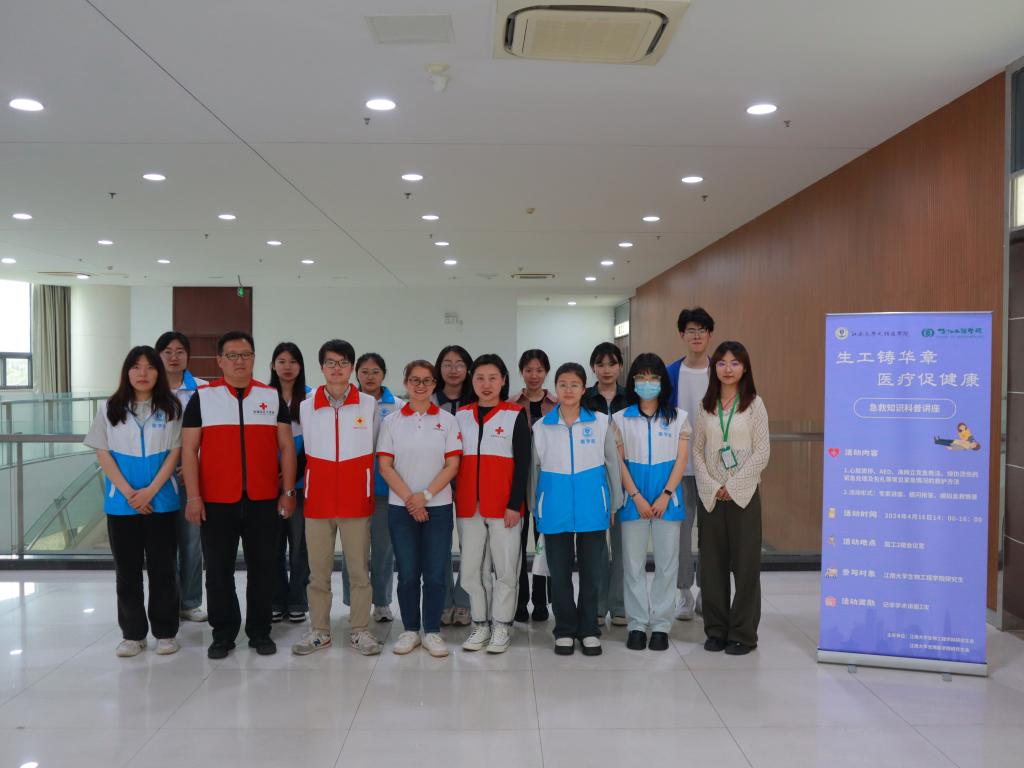 4月16日下午,生物工程学院联合无锡医学院,在国家工程研究中心二楼报告厅举办“生工铸华章,医疗促健康”急救知识科普讲座。活动特邀红十字会救护培训师、无锡市红十字赈济救援队副队长唐镇棣主讲,并通过科普讲座、提问抢答、模拟演练等多种形式开展科普。