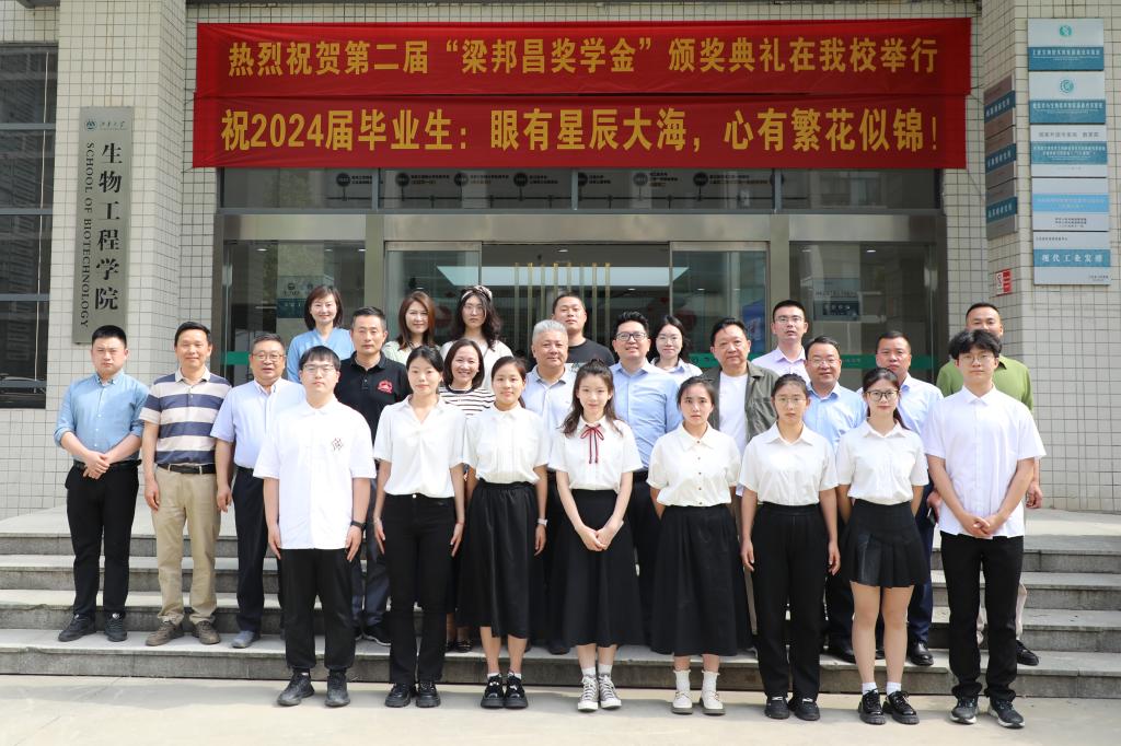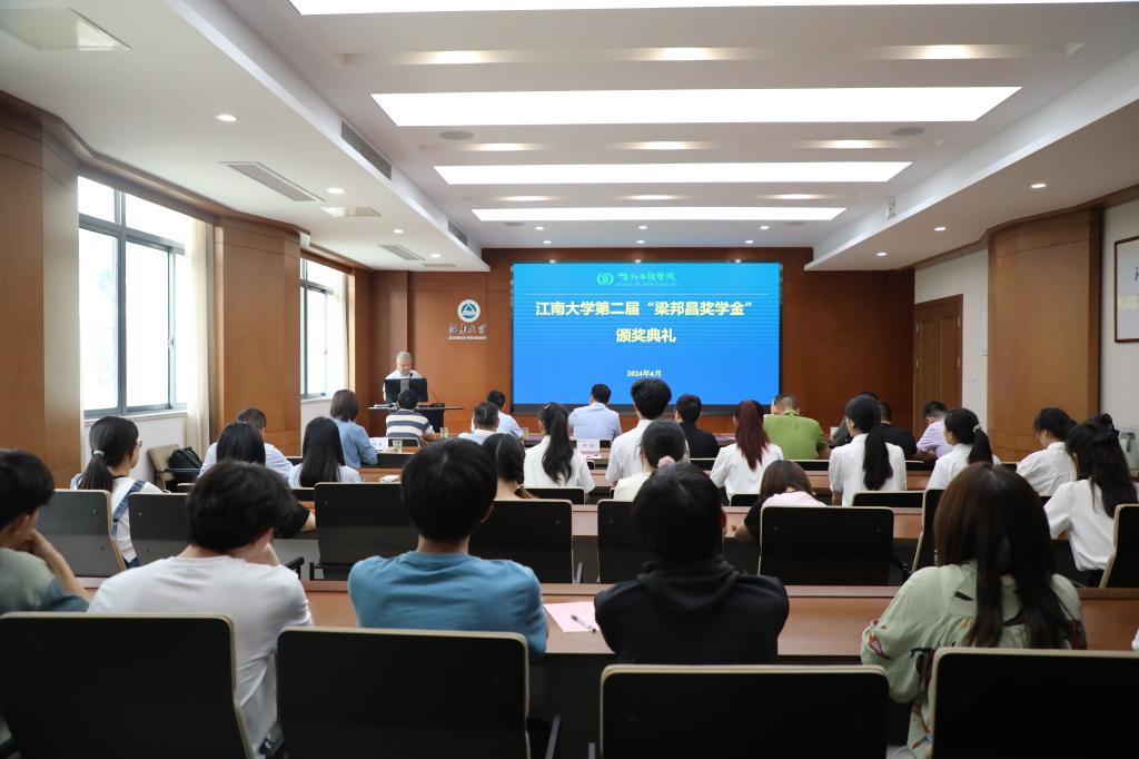6月4日下午,江南大学第二届“梁邦昌奖学金”颁奖典礼在生物工程学院举行。梁邦昌先生之子、广州梁辰美景文化有限公司总经理梁广友,洋河股份总裁助理朱昭鑫,中国酒业协会名酒收藏专业委员会副秘书长、江苏省收藏家协会酒类收藏专业委员会会长张继斌,江苏省收藏家协会酒类收藏委员会常务副会长、江苏酒文化陈列馆馆长陈先,江苏省收藏家协会酒类收藏委员会秘书长、江苏氿号门文创发展有限公司总经理孙年华,洋河股份中国酿造史研究中心主任薛化松,洋河股份定制营销事业部综合处处长陈跃,江南大学原副校长、生物工程学院教授徐岩,生物工程学院党委书记程捷音,教授范文来等出席颁奖典礼,活动由学院党委副书记、副院长林丹主持。