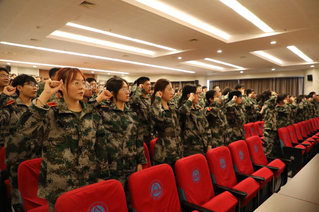 22024级本科生代表张潇予举起军训旗帜,带领全体参训同学宣誓。在铿锵有力的军训誓词中,全体参训新生激情澎湃,斗志昂扬。生工学子定能以青春之名,应军训无限挑战;以奋发之姿,将热血挥洒四方!