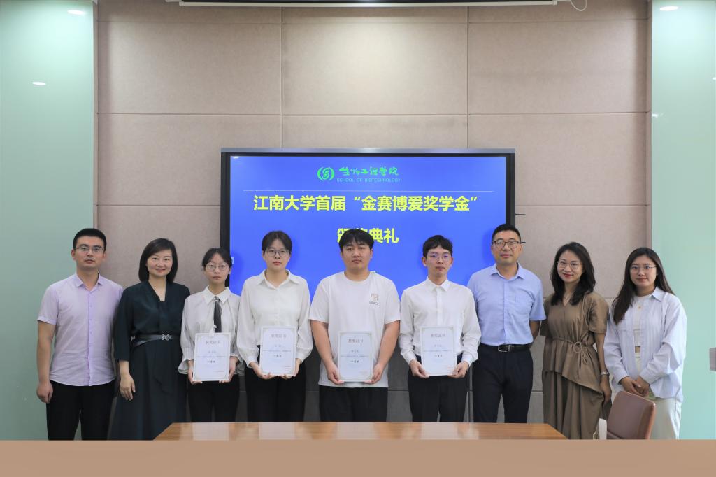 6月14日上午,江南大学第一届“金赛博爱奖学金”颁奖典礼在生物工程学院B327会议室举行。长春金赛药业有限责任公司CMC项目管理总监李丹,长春金赛药业有限责任公司人力经理赵嘉琦,生物工程学院党委副书记、副院长林丹及获奖学生代表参加颁奖典礼,活动由生物工程学院辅导员张同舟主持。