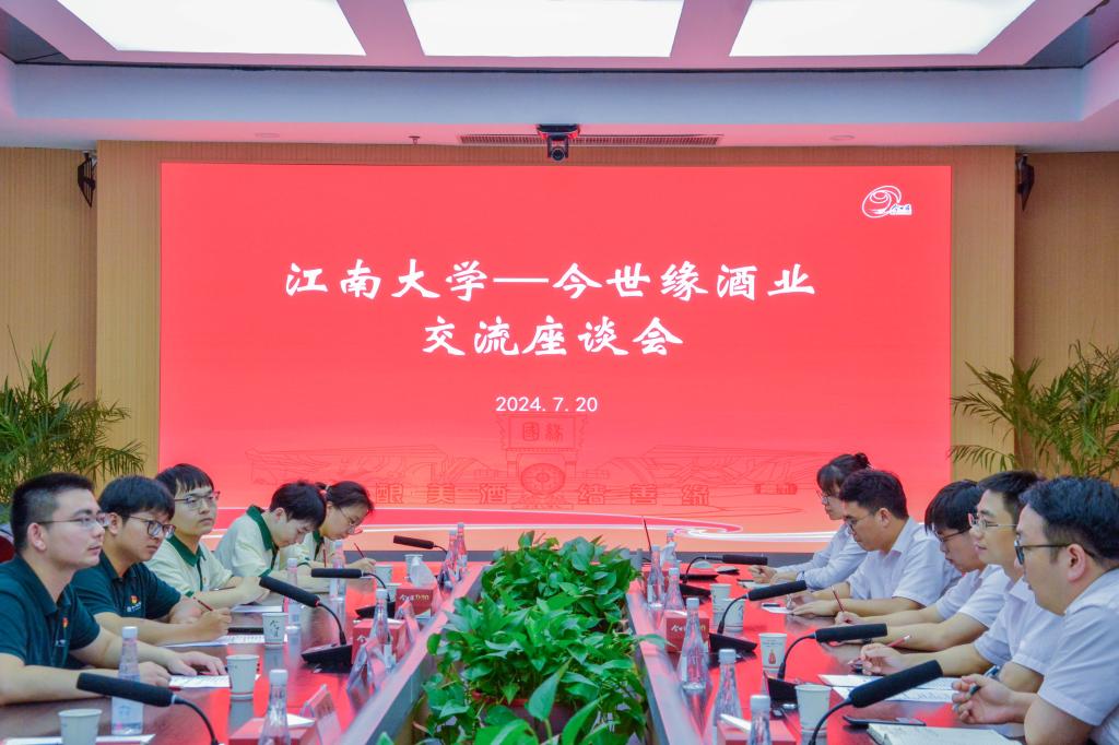 座谈会上,今世缘酒业研究院常务副院长唐群勇、今世缘人力资源部招聘经理周柳旭、今世缘任职的校友代表与实践团师生围绕今世缘发展历史、人才招聘政策、生物工程学院发酵精神进行深入交流。博士生代表班世博围绕“认识自然发酵”“调控自然发酵”“解构自然发酵”三个议题,从发展新质生产力、兼顾传承与创新、提高文化自信等方面深入探讨了中国白酒内在核心技术的创新与发展。唐群勇希望今后进一步推动与江南大学生物工程学院的校企合作,为生物工程学院在读本科生、硕博研究生提供社会实践、课题研究的一流平台。最后,企业领导与教师代表共同举行“江南大学大学生社会实践基地”授牌仪式