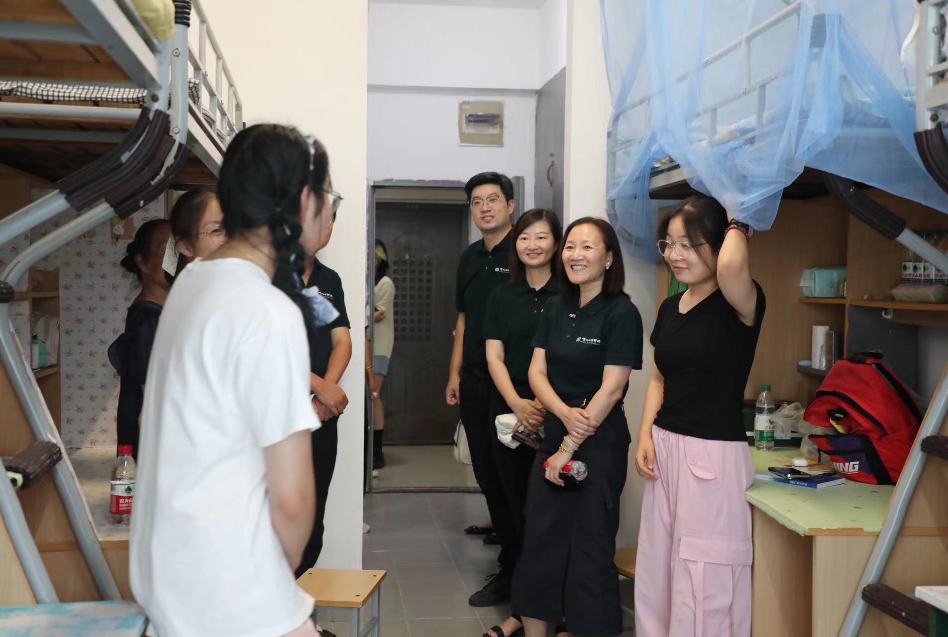 暖“新”关怀,温情系师生。为深入了解2024级新生入学情况,倾听他们的心声,帮助其营造良好的生活与学习环境。8月23日下午,生物工程学院领导和老师走进新生宿舍,与同学们进行了面对面的交流,关心同学们的生活起居和专业学习期待,并就新生入学教育、军训安排、宿舍安全、反诈防骗等进行了解答和提示。同学们纷纷表示深切感受到了学院对同学们无微不至的关心与关爱,面对即将展开的大学生活,将以昂扬的精神面貌积极融入新环境、拥抱新梦想、投身新征程。