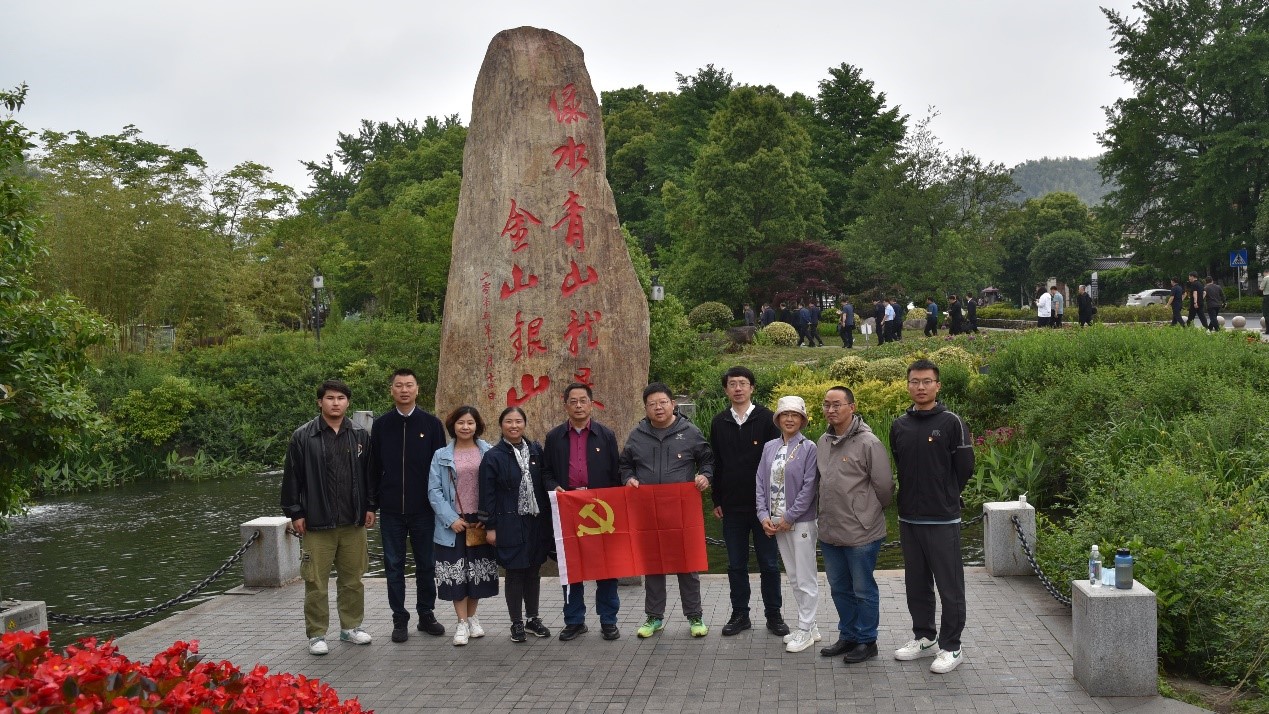 5月12日上午,支部党员们来到浙江湖州安吉县天荒坪镇余村生态农业示范区,走进了习近平总书记“绿水青山就是金山银山”“两山”理论诞生地,切身领略中国美丽乡村精品示范村现代化建设的成效。十多年来,当地政府坚持党建引领绿色发展,实施生态修复和保护工作,大力推进农村生态建设,从“卖石头”到“卖风景”,逐步走出了一条生态美、产业绿、百姓富的绿色发展之路,成为美丽中国生态文明建设的一座重要地标。余村的发展道路和建设成果,充分体现了“两山”理念的科学性、前瞻性,党员们对习近平总书记关于“绿水青山就是金山银山”的重要思想有了更具体的体验、更深刻的认识。