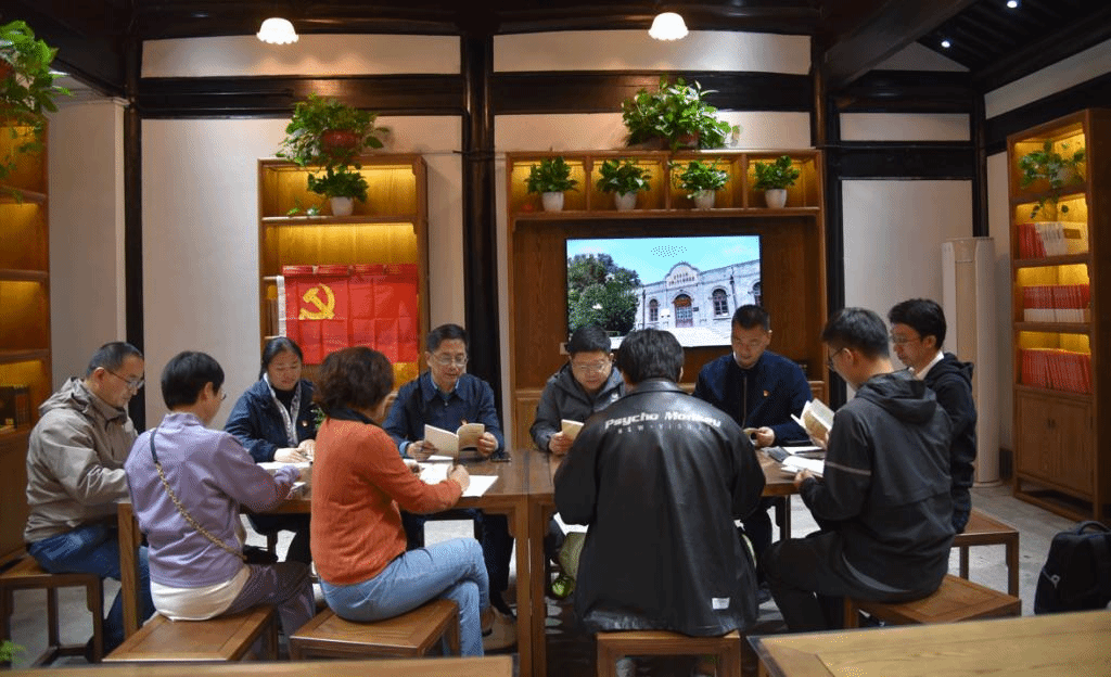 第三站参观周恩来纪念馆。通过观看1939年春周恩来回故乡绍兴宣传抗战专题展、廉政教育专题展等,党员们认真学习周恩来崇高的精神风范和优良的革命传统,再一次深刻地领略了周恩来为民、务实、清廉的党员干部楷模事迹。周恩来总理是近代以来中华民族的一颗璀璨巨星,是中国共产党人的一面不朽旗帜。在纪念馆里,党员们仔细观看周恩来光辉一生的大量图片、史料和实物,被他为祖国、为人民“鞠躬尽瘁、死而后已”的伟大精神和严于律己、清正廉洁的高尚品德深深感动;在纪念馆里,党员们面向鲜艳党旗,重温入党誓词,心潮澎湃,强化了坚定理想信念、不忘初心使命的时代感和责任感;在纪念馆里,党员们开展了“深入学习贯彻习近平新时代中国特色社会主义思想主题教育”的专题学习讨论,倍感当代中国马克思主义、二十一世纪马克思主义的真理伟力。