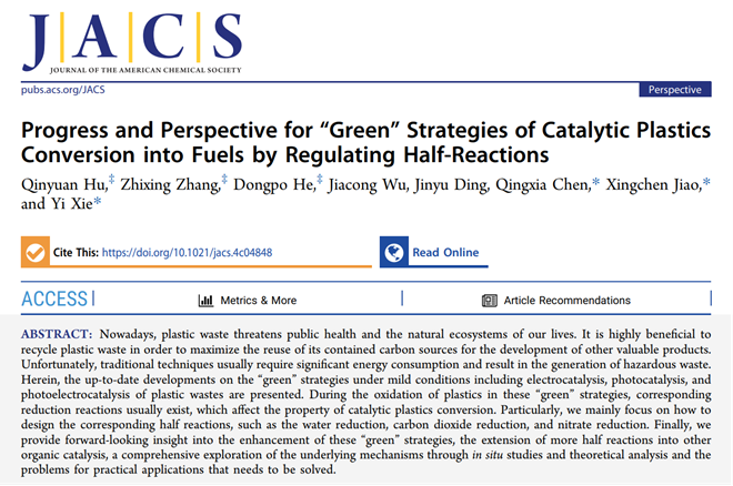 化学与材料工程学院焦星辰教授、陈庆霞副教授JACS观点:“绿色”塑料催化转化策略的进展和展望