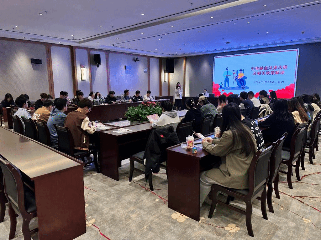 此次活动分为两个单元,首先,宜兴市血站血源管理科副主任刘梅为大家讲解了无偿献血的意义及法规、血液生理知识、献血流程及注意事项等内容,深入浅出地分析了无偿献血的科学性,细致的讲解使大家对无偿献血有了一个全新的认识。之后解读了江苏省对无偿献血者的奖励政策。讲座结束后,在医务人员的引导下,同学们有序地配合工作人员进行身体检查、抽取血液、化验血型等各个流程。在医务人员的讲解和鼓励下,党员同志身先士卒,不少同学也克服恐惧,力所能及献出鲜血。处理创口之后,由志愿者带到休息区,为献血者们提供糖水和面包补充能量,同时询问献血者身体恢复情况,并为他们颁发献血证。这份澎湃的爱心热潮在每一位学子心中传递,让整个献血活动充满了温馨。此次共有31人成功献血,血量达到9300毫升。