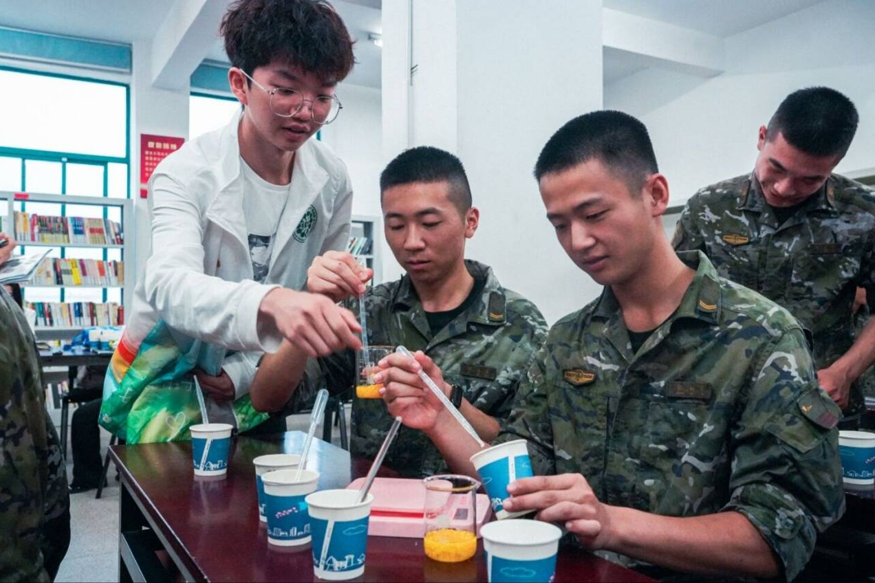 “阳光下的守护者”社会实践活动,以DIY防晒霜为媒介,带领武警战士沉浸式体验“美丽化学”的魅力,心手互动中触发积极情绪,缓解训练压力。参与此次科普实践的学生们在此次活动中加深了对专业知识的理解,增强了专业认同感,传递美丽健康生活的理念。