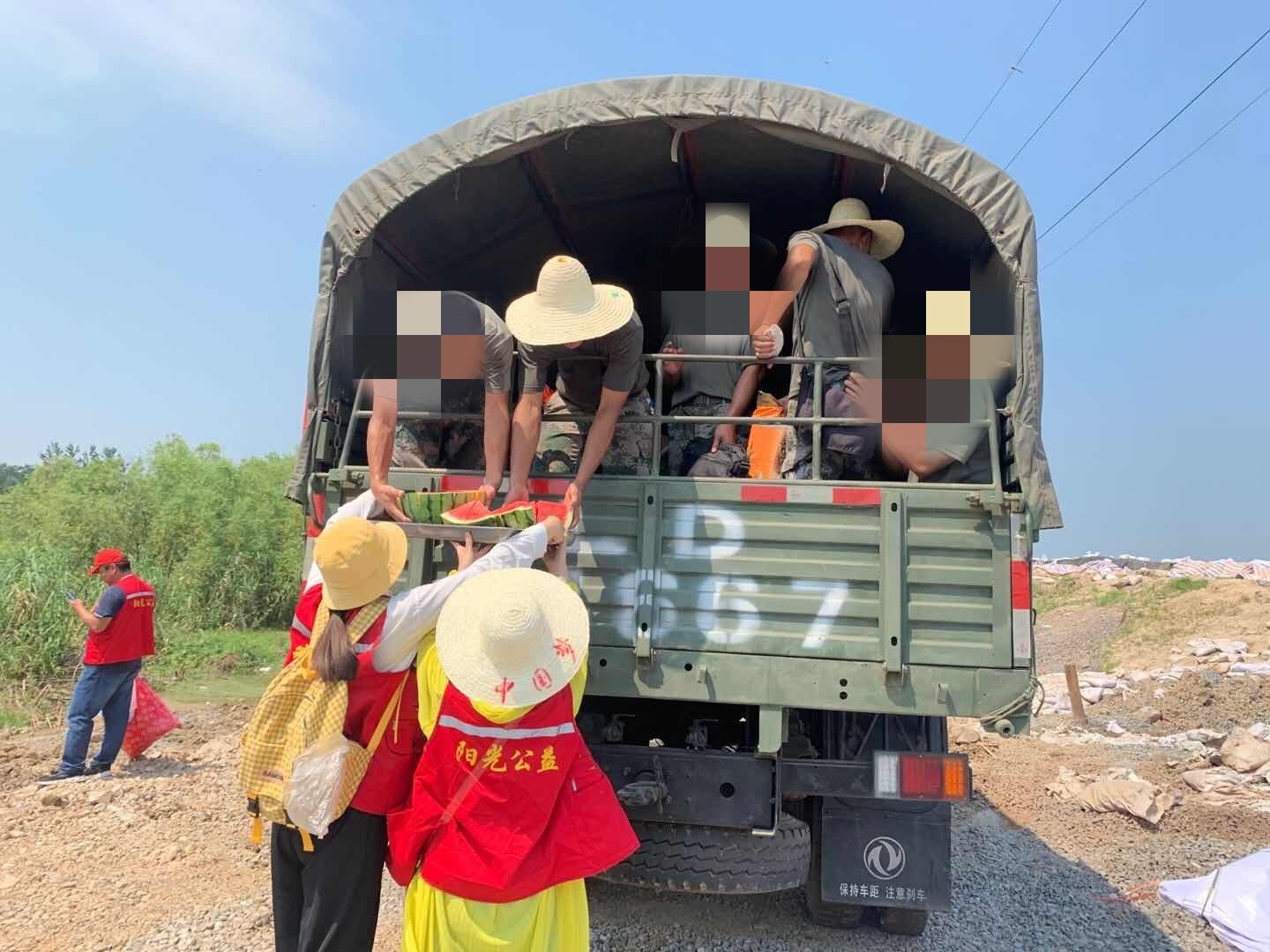 受接连暴雨影响,安徽省内多条河流水位不断上涨,多处堤坝险情不断,河流沿线多个城市乡村出现内涝,防汛形势十分严峻。8月5日,化学与材料工程学院方文静同学与11位庐江县阳光公益协会的志愿者自发前往安徽洪涝灾害地区,为抗洪抢险官兵送去清凉饮品与水果。