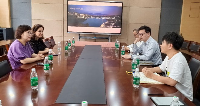 杨成介绍了江南大学的基本情况以及学校围绕化妆品开展的学科交叉研究情况,同时介绍了化妆品创新中心的发展历程以及当前研究关注的重点。化妆品相关团队老师围绕自己的研究领域作了简要介绍,并与Vania Leite教授开展了热烈的讨论。