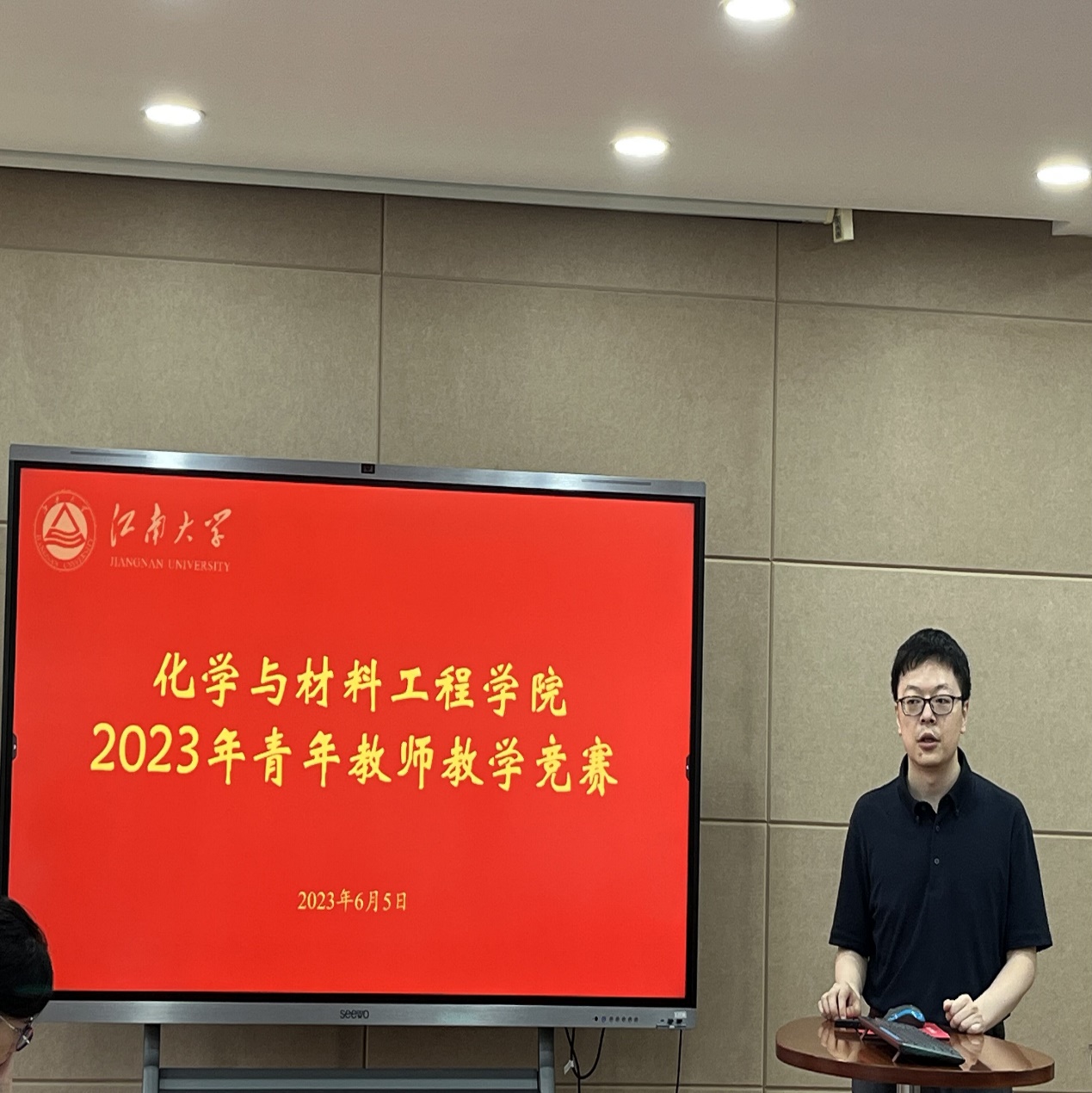 活动由教学副院长王靖主持,原食品学院党委书记王海鸥带领化学与材料工程学院4位经验丰富的教学督导担任评委,9位青年教师参加了比赛,学院党委书记潘庆伟进行总结点评。