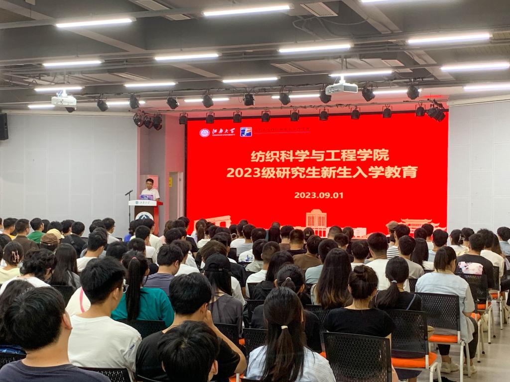 为了更好地让研究生新生融入新的学习环境,在学生中营造严谨诚信的学术风气,9月1日下午,纺织科学与工程学院在北区大学生活动中心F105开展了2023级研究生新生入学教育。学院党委副书记兼副院长杨莉勤,副院长马丕波、张典堂,研究生秘书沙秋霖、实验室主任晋阳出席活动,2023级224名研究生参加入学教育,活动由2023级研究生辅导员伍胤鸿主持。