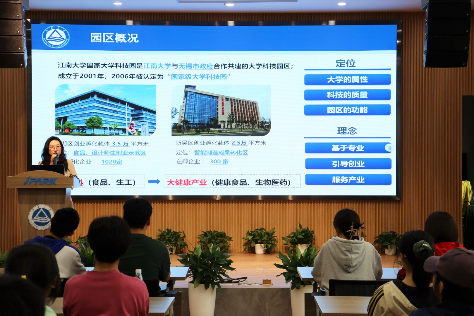 活动伊始,江南大学国家大学科技园总经理助理兼双创服务部主任张翼向大家做主题为“依托一流学科、建设专业园区、服务产业发展”的专题宣讲,她从科技资源集成、科技创业孵化、创业人才培养、科技成果转化和开放协同发展五个方面介绍了园区培育模式和举措,并强调科技园始终作为校地协同合作的窗口、科技成果转化的桥梁、科技企业孵化的高地、创业人才培养的摇篮,不断摸索形成“成果转化-产品研发-企业孵化-资本驱动-产业加速”的全产业链的科技孵育体系,将学校创新要素转换为地方产业发展新动能,为大学生双创提供有力支撑。