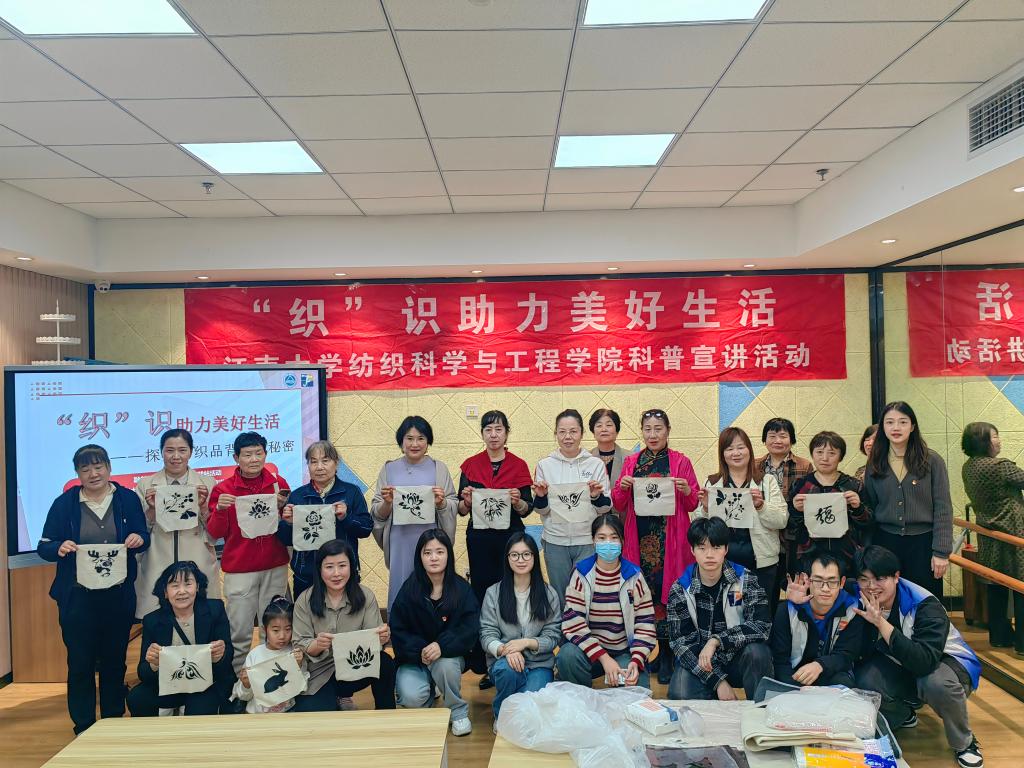 4月19日上午,纺织科学与工程学院轻化本科生党支部前往雪浪街道老年人日间照料中心开展“‘织’识助力美好生活”主题党日活动。支部党员与街道老人共同探索纺织品背后的秘密,将纺织知识带去寻常百姓家。