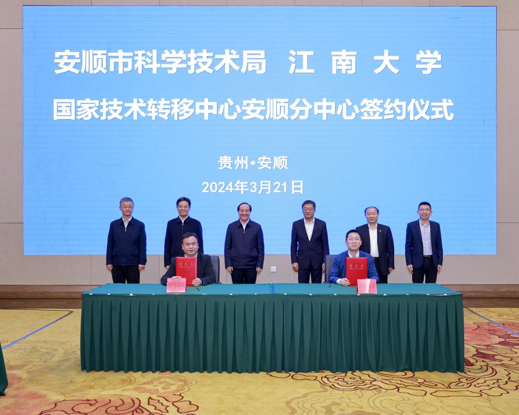 签约仪式上,江南大学与安顺市政府签订全面战略合作协议,与安顺市科技局签订共建技术转移中心安顺分中心协议,与贵州南山婆食品加工有限公司签订共建协同创新实验室框架协议;安顺市委常委、副市长顾元亮介绍了安顺基本情况及生态食品产业情况;贵州南山婆集团有限公司、贵州天赐贵宝食品有限公司负责人作交流发言。
