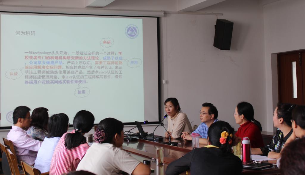 9月28日下午1:30 - 3:00,外国语学院大学英语“铿锵玫瑰”系列教研活动第二讲在学院和教研室的精心策划和安排下于大会议室如期举行。本次讲座有幸邀请到了物联网学院副院长、2017年国家自然科学基金优秀青年基金项目获得者栾小丽博士亲临现场和全院中青年教师畅谈科研心得。本次活动由拓展部主任谢竞贤老师主持,黄城芳书记、施惠平副院长、朱义华副院长等学院领导出席了本次教研活动。