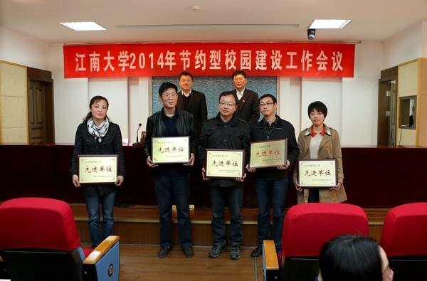 会上,房产管理处副处长王强向大会汇报了江南大学2013年度节约型校园工作情况和2014年深入开展节约型校园建设的思路与任务。大会表彰了2013年度校节能工作先进单位及先进个人。生物工程学院、机械工程学院、法学院、党委组织部、实验室与设备管理处等5个单位荣获“2013年度节能工作先进单位”。生物工程学院王玉红、物联网工程学院赵爱军等10人荣获“2013年度节能工作先进个人”。江南大学“绿点江南环保协会”荣获2013年度节能减排特别奖。武贵龙书记、田备副校长为获奖单位和个人颁奖。先进单位和先进个人代表先后发言,交流了各自在节能减排方面所做的工作和经验体会,并就如何更好地推进节约型校园建设工作提出了一些建设性的建议。
