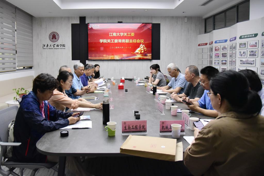 各学院关工委做工作交流。人文学院关工委聚焦学校小课堂“服务社会大民生,围绕四个‘坚持’”做好关爱育人;食品学院关工委结合师生思想动态,发挥老领导、老专家、知名校友的优势特长关心青年师生成长;化工学院关工委发挥“五老”作用,弘扬“五老”精神;设计学院关工委坚持工作制度,开展主题教育活动;马克思主义学院关工委稳步推进学院关工委优质化建设;生命科学与健康学院关工委“五老”赋能助成才,深耕品牌育新人;物联网工程学院关工委聚焦新要求、新思想、新作为、新期待开展工作;商学院关工委加强队伍建设,组织关工委老同志开展关工委学生社区活动;环境与生态学院关工委工作融入学院党政工作统筹安排;纺织科学与工程学院关工委组织老专家,开展特色信仰公开课;法学院关工委拓展校外实践基地开展党团共建活动;机械工程学院关工委利用关工委校外基地,组织学生开展社会实践活动;生物工程学院关工委充分挖掘老领导、老专家、知名校友的潜力,服务大学生成长成才;人工智能与计算机学院关工委加强自身建设,重视学院关工委优质化建设;理学院关工委完善在职教师党支部与学生团支部进行共建的运行机制;无锡医学院关工委与无锡市心理学会开展共建,创建心理健康教育品牌。