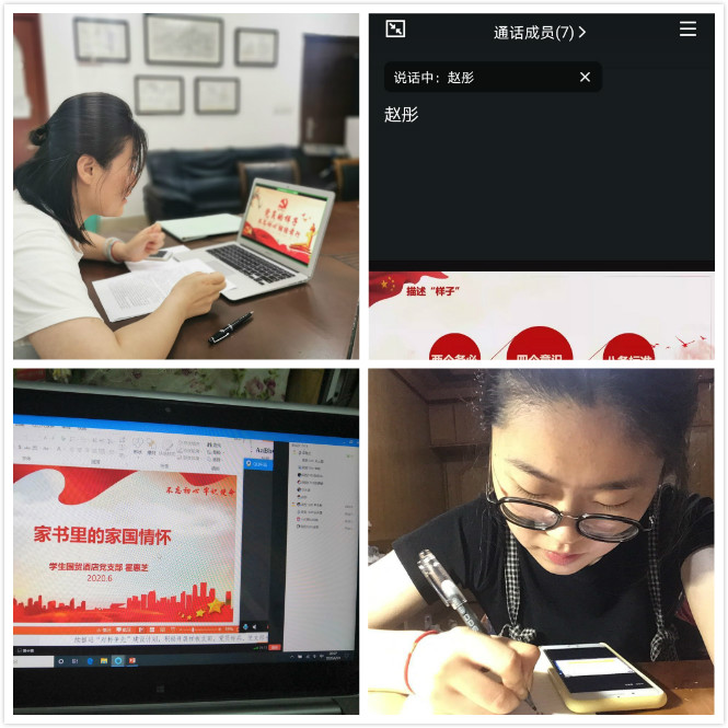 为进一步贯彻学习习近平新时代中国特色社会主义思想,认真落实“三会一课”制度,根据院党委部署,学生国贸酒店支部本学期采用线上先写结合的方式开展了两次微党课学习。2020年6月24日,支部书记霍惠芝为大家开展了一节主题为 “家书里的家国情怀”的主题微党课。2020年7月13日,支部副书记赵彤以“党员的样子-不忘初心,继续前行”为主题带领大家共同学习。