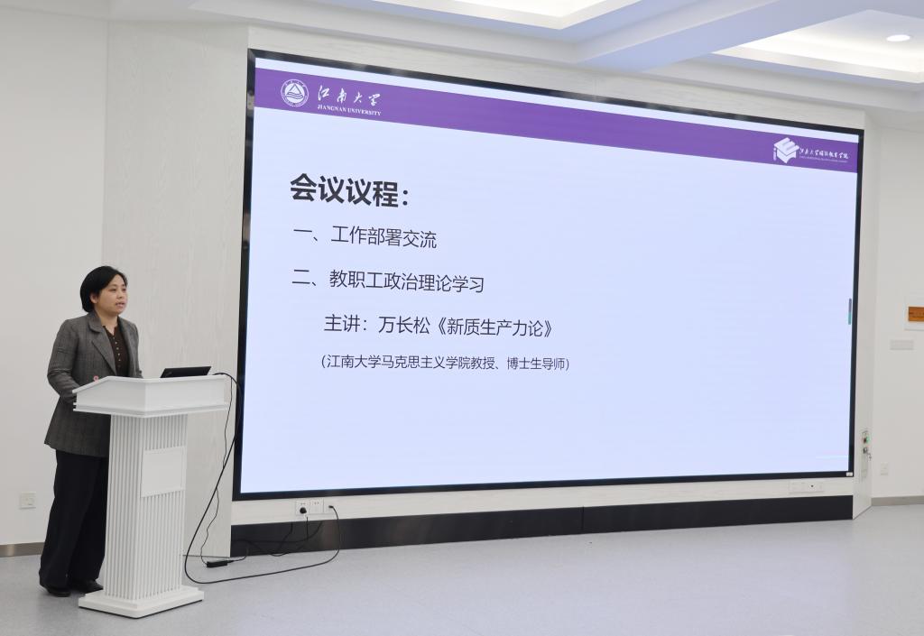 江南大学马克思主义学院教授、博士生导师万长松做题为《新质生产力论》的教职工政治理论学习。他从新质生产力本质论、新质生产力价值论、新质生产力生成论、新质生产力误区论等四个方面来阐释新质生产力从本质上、价值上、生成上的概念范畴,他认为新质生产力是中国马克思主义科学技术观和政治经济学的重大理论创新,是习近平总书记对历史唯物主义发展的原创性贡献。