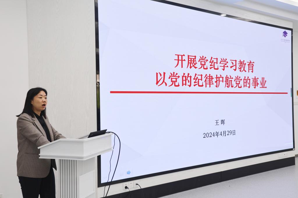 王晖对党纪学习教育进行专题部署并领学。她解读了《关于在全党开展党纪学习教育的通知》,并对《中国共产党纪律处分条例》重点内容进行学习导读。学院各分管领导和部门负责人结合条线工作进行布置交流。