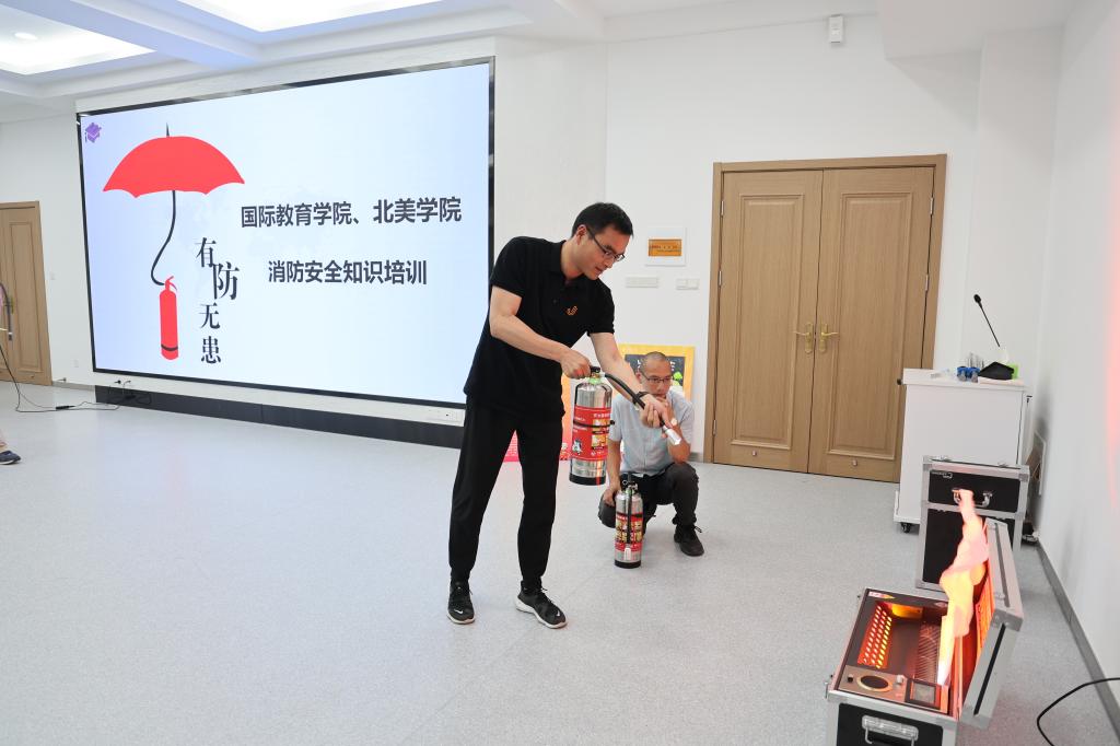 学院各分管领导结合条线工作进行布置交流。随后学院开展消防安全演练活动。校保卫处消防科科长王世强详细讲解了干粉灭火器、二氧化碳灭火器、水基灭火器的操作使用方法,并指导下教职工参与灭火演练。大家纷纷表示,通过理论讲解和实际操练,提升了消防安全意识,基本掌握了灭火器的使用方法,提高了应对火灾等突发情况的处置能力。