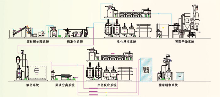 该平台由原料预处理、标准化、液化、固液分离、酶解、浓缩、干燥等七大系统组成,七大系统紧密结合,不仅可以模拟工厂进行连续生产,还能单独使用进行深加工过程中某一影响因子的深入研究 ,是目前国内第一条也是唯一一条粮食深加工中试生产线。