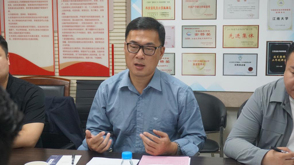 李博对佟景洋一行来访表示热烈欢迎,并详细介绍了学校的产学研合作情况。他表示,兴安盟与我校共建技术转移分中心以来,双方通力协作,开展了一系列务实并卓有成效的校地校企合作活动,多项成果在当地顺利转化。特别是今年8月,我校与兴安盟共同主办的“大食物观·食品科技与产业创新发展阿尔山峰会”成功举办,标志着双方合作进入了一个全新阶段。未来,希望双方能继续加强交流和探索,依托分中心的建设为兴安盟的科技创新和经济社会发展贡献更多的江南力量。佟景洋对学校长久以来的大力支持表示感谢,并就前期双方合作情况及下一步合作重点提出建议,希望双方今后继续加强交流、务实合作,在新的更高的平台上推动科技成果转化。