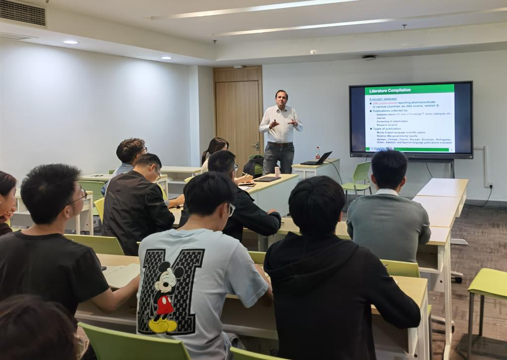 Tim aus der Beek博士以《Pharmaceuticals in the environment-The global perspective》为题,从全球视角系统阐述了药物活性化合物环境污染的研究现状,随后生动地介绍了在印度、德国等国家开展的药物活性污染物调研情况,最后详细剖析了药物活性污染物调研、检测过程中遇到的挑战及取得的效果和启示。报告期间,在场师生与Tim aus der Beek博士围绕新污染物的检测方法、环境标准和处理技术进行了深入交流,为未来双方合作开展betway必威官方网站app、技术转化、人才培养奠定了基础。