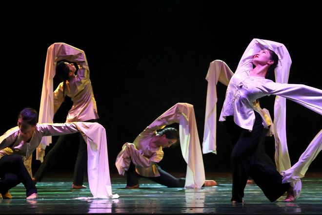 下篇“守正创新”,侧重“守正”古典舞语汇与精神的原则下“新创”系列舞蹈作品。激发师生的文化感知力、文化理解力与文化创新力,提升师生对中国古典舞文化的深度理解,让课堂到舞台形成有机连接。学生原创独舞作品《茶韵》,诗词选自唐·白居易《山泉煎茶有怀》,运用古典舞“虚实”“流动”的特点,表现了一位女子观茶之淡雅、品茶之留香、悟茶之精神。教师新创独舞作品《徐霞客》,表现了徐霞客“达人未达,探人未知”的求索精神,“既然选择了远方,便只顾风雨兼程。抚摸着崎岖的岩壁,聆听着潺潺的流水,任由脚下伤痕累累,不灭的是坚定的信念。”教师新创独舞作品《对月》,诗词选自唐·李瑞《拜新月》,表现了一位独在异乡的女子“与月对话,对月思故”的无尽思绪,通过祭月、拜月等内心诉求,来抒发自己对已故之人的思念之情。臧彦杰老师表演的舞蹈《狂歌行》,诗词选自唐·李白《庐山谣寄卢侍御虚舟》,表现了舞者借李白的情绪与山水问答,与天地对话,举手袍袖间的洒然、无奈、洒脱等情绪。冯程程的课堂教学片段《黄河之魂》,将课堂设计搬上舞台,利用讲述、示范、指导等教学方法,提高同学们对作品的深度理解。最后一个节目,经典古典舞作品《黄河》,由26位舞蹈编导大一新生表演,他们用慷慨激昂的情绪、精神饱满的热情,充分的展现了中华儿女自强不息、奋斗不止的品格。迎来了全场观众情绪高昂的掌声,整场课堂在一片激动的气氛中落下了帷幕。