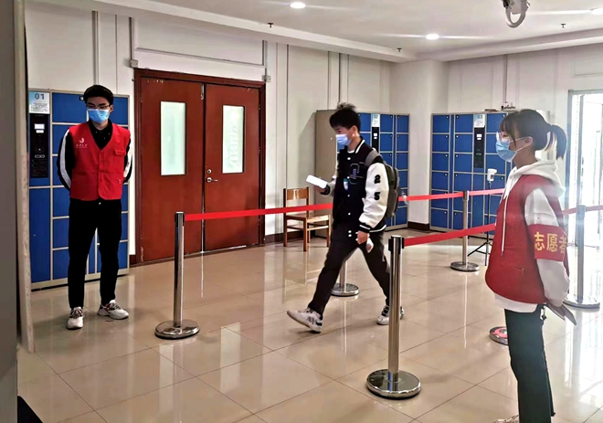 勤径书山的“志愿红”们主动肩负起图书馆内的管理工作。他们坚守门口帮忙查看测温、座位号、门铃码,每两小时巡视检查隔位就坐等情况,与指导老师线上反馈解决问题,十点闭馆后检查门、窗、水电……他们用实际行动诠释和践行着“奉献、友爱、互助、进步”的志愿者精神。