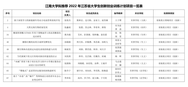 2022年江苏省大学生创新创业训练计划推荐名单(至善学院项目)