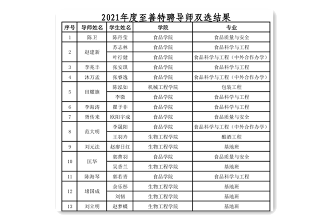 2021年度至善特聘导师双选结果(部分)