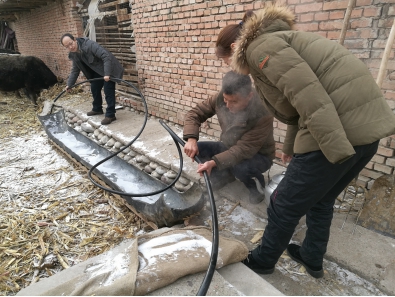陶谦与结对子少数民族学生及其父亲一起饮牛