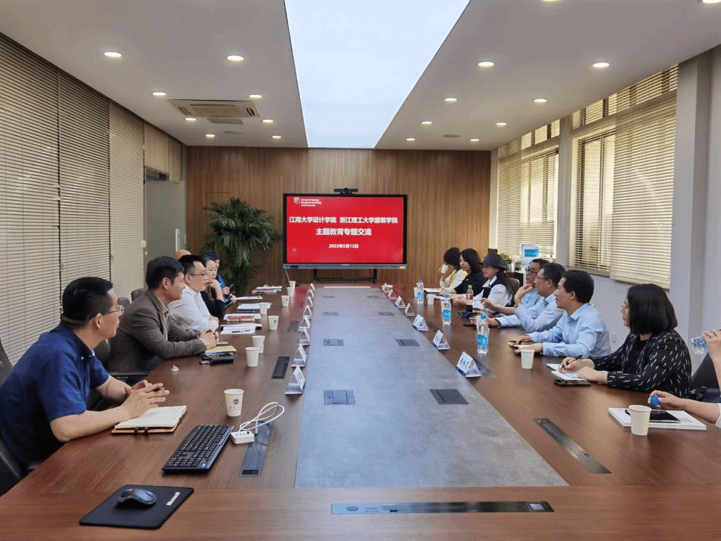 5月13日下午,江南大学设计学院与浙江理工大学服装学院学习贯彻习近平新时代中国特色社会主义思想主题教育专题交流会在设计学院B314会议室举行。浙江理工大学服装学院党委书记熊杰、院长崔荣荣、党委副书记胡永青、副院长须秋洁等党政班子成员,江南大学设计学院党委书记王维青、党委副书记江琳娜、副院长胡伟峰、周林等党政班子成员和服装系教师代表等共同出席专题交流会。