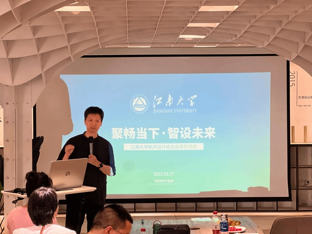 5月27日,江南大学杭州设计校友会论坛在杭州飞鱼设计总部成功举办。江南大学设计学院党委书记王维青,设计教育发展基金会秘书长曹鸣,中华全国供销合作总社杭州茶叶研究院学术委员会主任、浙江茶业学院执行院长张士康,杭州设计校友会创始会长、杭州正野博展艺术有限公司董事长徐征野,浙江校友会常务副秘书长叶会裕,杭州设计校友会会长、飞鱼设计集团董事长余飚及来自浙江校友会、杭州设计校友会的50余名校友参加本次活动。