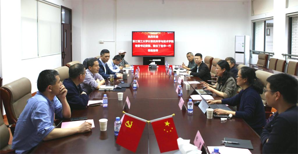 4月28日下午,浙江理工大学计算机科学与技术学院院长丁佐华、党委书记黄黎一行到人工智能与计算机学院进行访问交流。学院党委书记张华、副院长 (主持工作)方伟、副院长谢振平、王士同教授、李光辉教授、办公室主任梁明霞参加座谈交流。