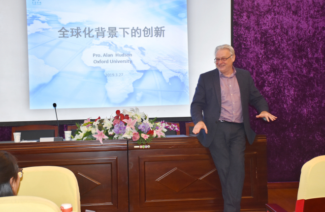 2019年3月27日下午,至善学院在图书馆819举办了一场题为“全球化背景下的创新”的创新领导力系列讲座,特别邀请了牛津大学教授Alan Hudson与同学们分享创新以及创新对于当今全球化发展的影响。报告厅现场160多位同学济济一堂,聚精会神地聆听Hudson教授的演讲。