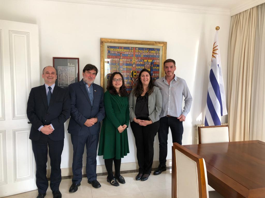2019年4月17日上午,江南大学食品学院与乌拉圭代表团交流会在北京乌拉圭驻华大使馆顺利召开。乌拉圭农科院董事会主席JoséLuis Repetto、乌拉圭农科院国际合作协调员Verónica Musselli、乌拉圭驻华使馆一等秘书Matías Benítez、乌拉圭驻华大使馆农业外交官Javier Rodriguez、江南大学食品学院副院长谢云飞等出席会议。