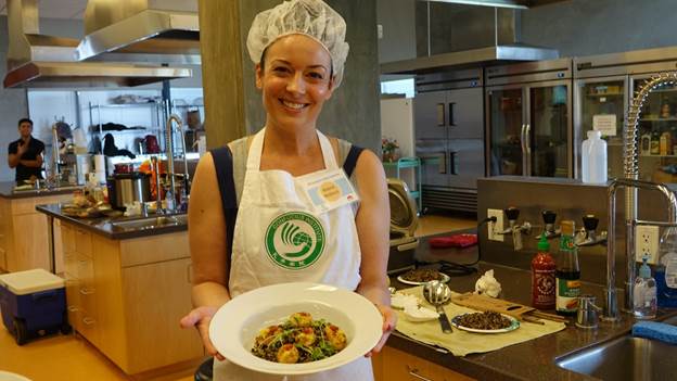 在戴维斯当地医院工作的医师助理Amoret Nicklisch的作品“欢乐仙贝”凭借其独特创意,以及精美的盘饰最终荣获冠军;来自本校的工作人员艾琳▪贝尔特伦(Eileen Beltran)的“巧克力猪排”一点也不逊色,美丽清新又富有热带丛林特色,已然成为本次大赛的明星作品;来自萨克拉门托的营养专业应届大学毕业生Bich-Ngan Steward的姜汁茄子牛肉卷米凭借多样化的口感赚足人气;当地护士Stephanie Young的姜味梅汁手撕猪肉小汉堡风味独特浓郁;韩国留学生Giyeon Hwang的作品“麻辣鸡”真正体现了李锦记酱料在家常菜中的巧妙组合;本校食品专业学生Michael Craig的江苏特色虾清新淡雅,凸显了淮扬菜系的特色。