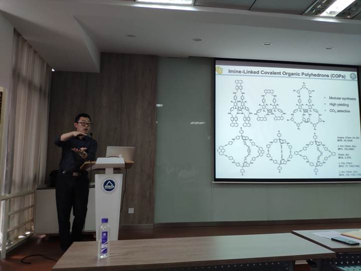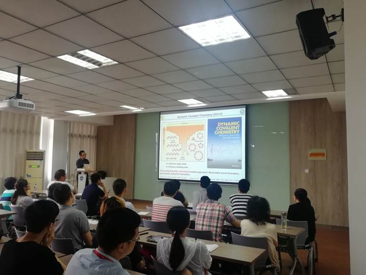 6月13日上午,美国科罗拉多大学波尔德分校张伟教授应邀来我校化工学院进行交流访问,并在化工楼A316报告厅给师生们奉献了一场题为“By-design Functional Molecular and Polymeric Materials: An Odyssey in Dynamic Covalent Chemistry”的精彩学术报告。本次报告由东为富院长主持,学院众多老师和学生参加了此次报告会。本次报告内容主要是,利用动态共价化学(Dynamic Covalent Chemistry),来设计和构建新型有机功能材料,包括有机分子笼、有机多孔材料(POPs、COFs等)、自修复聚合物等,并基于此,进一步研究其在纳米杂化催化剂、人造感应皮肤、固态电解质等方面的重要应用,尤其强调在合成过程中的热力学和动力学因素。张伟教授也与大家分享了科研的心得和经验等,报告现场气氛十分活跃,师生与张伟教授进行了广泛的讨论与交流。