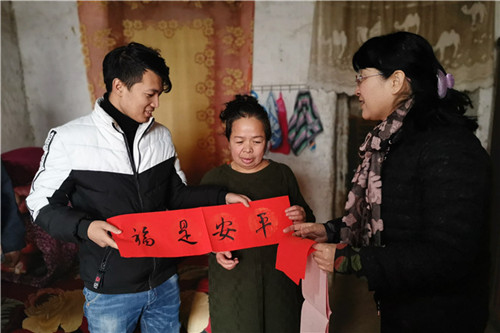 朱老师带着春联与慰问品走进了家门,与巴哈尔古丽的母亲古丽苏木交流了孩子在校期间的学习生活情况,并详细介绍了学校的资助政策、学校的教育目标、国家对少数民族学生的帮扶政策等。古丽苏木表示,内地高校派老师假期家访新疆学生,她们一家既惊喜又感动;有了党和国家的好政策,两个女儿上学都很顺利,他们一家四口日子越来越好,对生活充满憧憬。古丽苏木表示,除夕那天她要把学校送来的春联贴在门上,带着来自远方的祝福,过一个祥和的春节。