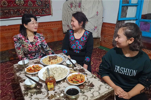 寒假伊始,家住新疆哈密市回城乡建国村的江南大学物联网工程学院2016级学生巴哈尔古丽·阿木提,就迎来了到访的特殊客人——江南大学内派教师朱红琴。