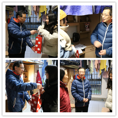 老师们分组开展暖冬行动,分别去到各学生宿舍,看望慰问了学院各年级共20位家庭经济困难学生,并为学生们送去慰问物资,与同学们亲切交谈,传递学院关怀。在学生宿舍里,老师亲切地与同学们交谈了他们生活与学习的情况,并且鼓励同学带着学院老师们的关心与帮助,勇往直前,奋发图强。同时叮嘱学生,在以后的学习生活中,有任何困难都可以向老师寻求帮助。同学们也对老师们的热切关怀表示感谢,虽然只是一些简单的日常用品,却实用又暖心,更饱含了学院对同学们的热切关怀。